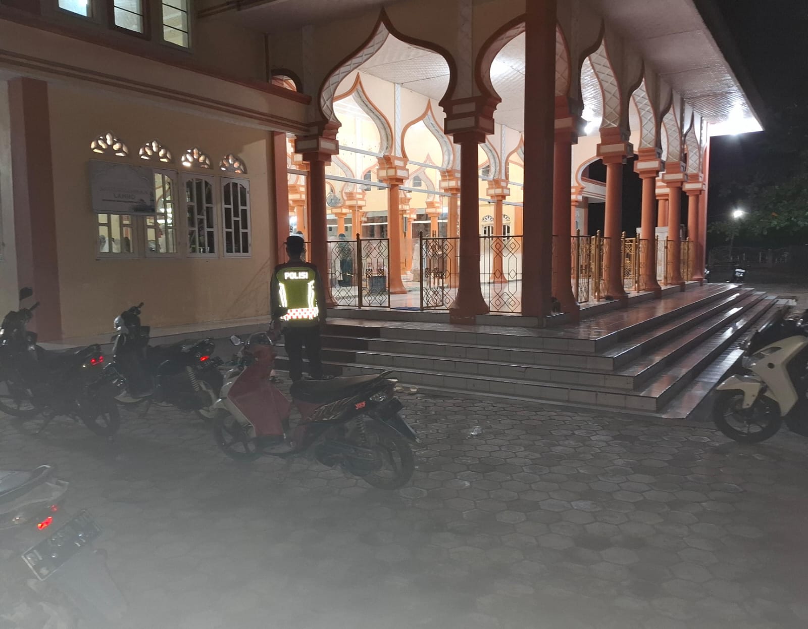 Personel Polsek Jaya Laksanakan Patroli Harkamtibmas dan Pengamanan Shalat Tarawih di Masjid Pasar Lamno