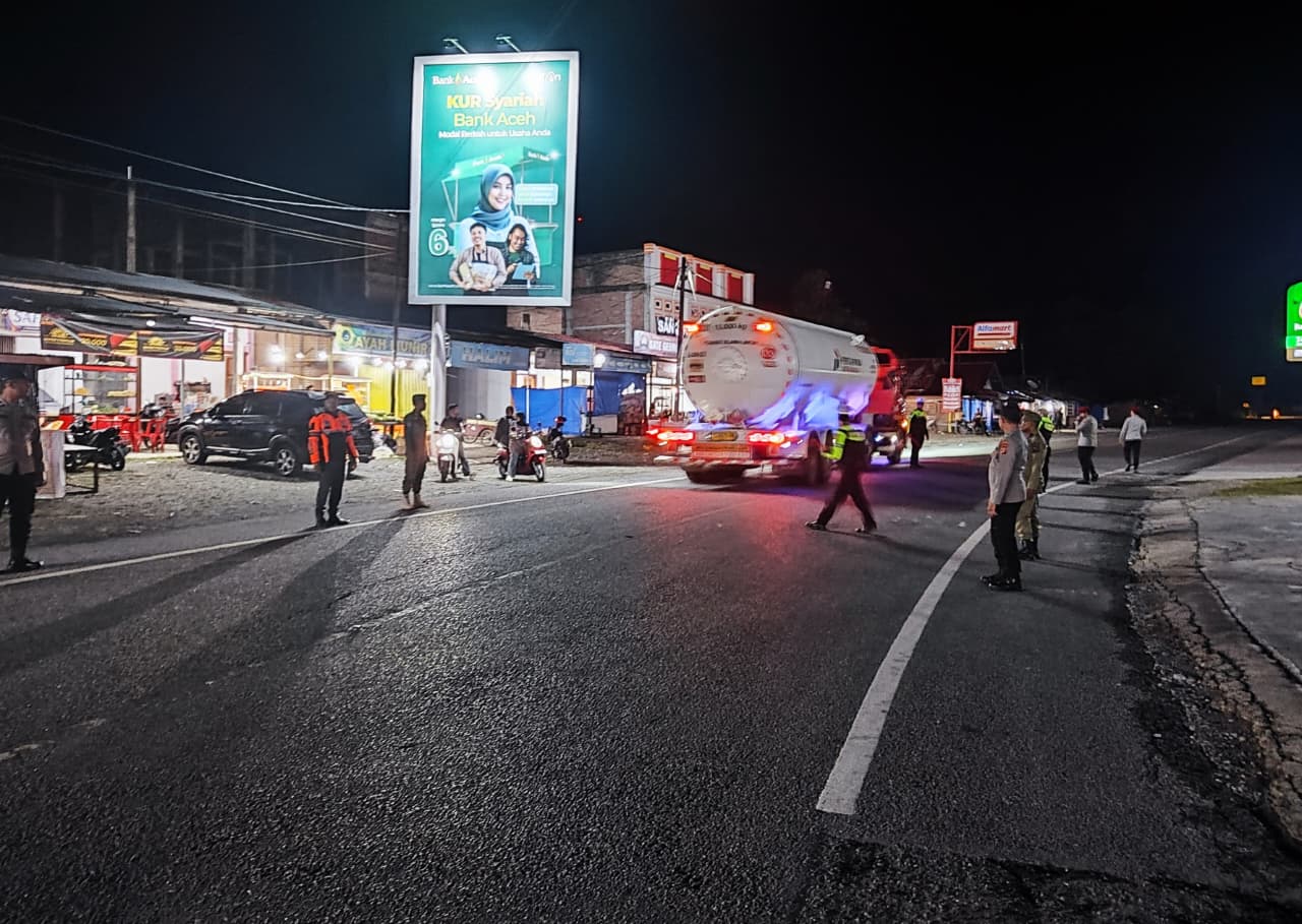 Kegiatan tersebut dilaksanakan sekira pukul 22.15 WIB hingga selesai, bertempat di Jalan Nasional Banda Aceh – Calang, tepatnya di depan Pos Pengamanan Lamno, Kecamatan Jaya. Pengaturan lalu lintas ini dilakukan guna mengantisipasi potensi gangguan kamseltibcarlantas, khususnya pada malam hari saat intensitas kendaraan masih cukup tinggi.