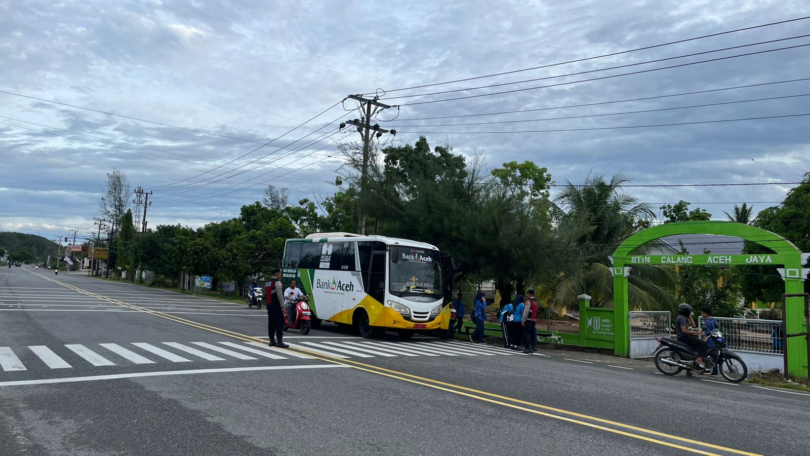 Kegiatan tersebut dilaksanakan di sejumlah titik rawan kemacetan di wilayah hukum Polres Aceh Jaya, salah satunya di depan MTsN 3 Calang yang menjadi pusat aktivitas masyarakat dan pelajar pada jam sibuk pagi hari.