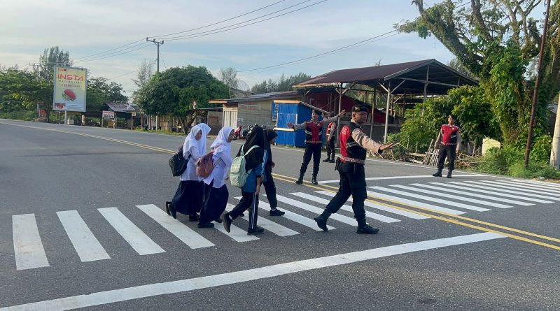 Sat Samapta Polres Aceh Jaya Kawal Aktivitas Pagi Masyarakat dan Pelajar Lewat Kegiatan Strong Point di Wilayah Hukum Polres Aceh Jaya